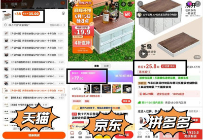 汽車後備箱備好收納箱,車內空間更整齊,比如入手一個悅卡汽車後備箱H20L家用車用收納箱,不僅可以放在車上當收納箱,出門露營時也能當小茶桌使用,而且還是可折疊式設計,不需要的時候收起來不佔空間,便捷度max。今年618期間,天貓活動價爲35元,拼多多售價25.8元,京東到手價19.9元,不同平台差價至高達2倍。