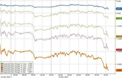 在利率市場上,隔夜短期利率(STIR)預期的變動圖表似乎正再度在華爾街“刷屏”——總體而言,市場對短期利率的定價下移在本周美聯儲決議後幾乎徹底“放飛”: