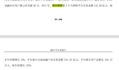 根據光大證券年報,2015年~2017年,光大易創分別取得淨利潤10萬元、223 萬元、1,074 萬元。2016年立馬理財躋身互聯網理財安全平台前10;2017年其平台交易金額達142.56 億元,較上一年同期增長53%;平台累計完成金融產品交易金額 243.35 億元。平台累計用戶總數達 352.27萬人,較年初增長 155%。