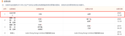 根據工商資料,方銳曾任網易樂得科技(天津)有限公司法定代表人,背後股東爲網易樂得科技有限公司,方銳也曾是這家公司法定代表人。