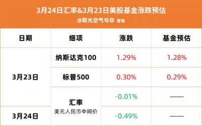 基金預估:納斯達克100相關基金預估漲幅+1.28%,標普500相關基金預估漲幅+0.29%。