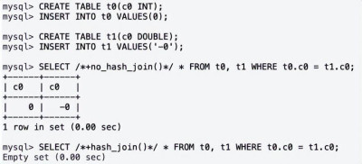 第二個查詢使用內部哈希連接 ( Inner Hash Join ) 連接時,因底層斷言 “ 0 ” 與 “ -0 ” 不相等,返回一個錯誤的空結果集。