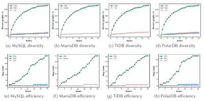 在和傳統的 PQS、NoRec 以及 TLP 兩類測試方式效率對比上,TQS 也是遙遙領先。