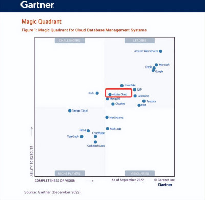 而在國際市場研究機構 Gartner 發布的《 2022 年度全球雲數據庫管理系統魔力象限報告 》 中,全球領導者象限的前四位都是外企。