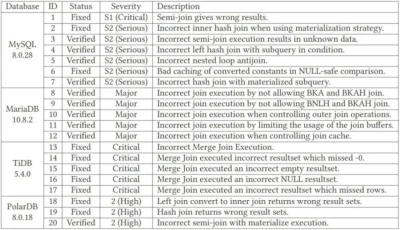 通常,在 DBMS 常見的查詢錯誤中,會有兩類 Bug。