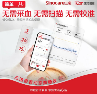 基於上述弊端性,三諾生物傳感推出三諾愛看持續葡萄糖監測系統,通過測量人體細胞周圍液體(稱爲組織間液)的葡萄糖濃度,從而反映血糖水平的系統,可以長達15天實時監測患者的血糖水平。