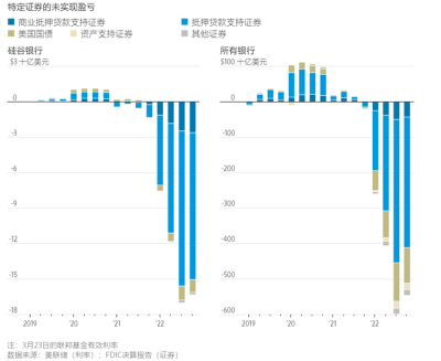繼2022年03月美聯儲展开加息循環,幾乎成爲歷史以來最爲激進的緊縮周期,美聯儲除了充分展現抗通脹的決心之外,似乎也會本次美國銀行業埋下危機。在2021年市場資金較爲寬松的情況下,美國銀行买入了大量孳息資產,如美國國債與抵押貸款支持證券MBS,以獲得固定收益投資的回報,同時也可以分散信貸風險並提高流動性。不過隨着美聯儲展开加息,市場資金趨緊,也就導致國債與MBS價格下跌(殖利率上升對應美聯儲升息),美國銀行業所持有的大量美債與MBS开始出現大量的账面虧損。