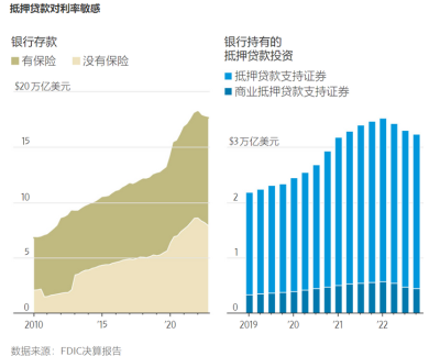 當前美國銀行未保險存款規模龐大,另外銀行業持有大量抵押貸款MBS、CMBS。