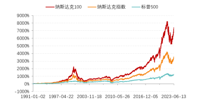 根據公开資料,納斯達克指數包含100家在納斯達克上市的非金融公司,納斯達克市場自誕生以來成功孵化出了一大批科技巨頭,被廣泛認爲是培育創新型、 科技型、成長型公司最成功的投資市場之一。作爲納斯達克市場的旗艦指數,納斯達克100指數長期漲幅明顯跑贏納斯達克指數。自1991年起,納斯達克100指數30多年來年化收益14.11%,明顯高於納斯達克的11.62%。(數據來源:Wind,截至2023.6.14)