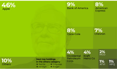 巴菲特以宣揚多元化而聞名,但伯克希爾哈撒韋的投資組合中幾乎一半都是市場上最有價值的公司,當中最知名的公司爲蘋果,其余部分相當多元化,包括銀行類股票、可口可樂和卡夫等消費必需品以及石油和天然氣公司。