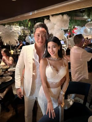 我是廣告 請繼續往下閱讀 曝光的一系列相片,王思佳一頭黑亮長髮垂肩,穿著細肩帶蕾絲滾邊小背心,露出黑影深溝和一截小蠻腰,搭配同材質網紗魚尾長裙,似乎違反印象中婚禮穿搭的禁忌,她說明:「國外婚禮的任何party盛裝出席是一種禮貌,沒有什麼搶新娘風採這種說法,因為沒有人會比新娘美!這裡每個人都很誇張!但誇張是常態,是標準配備。」