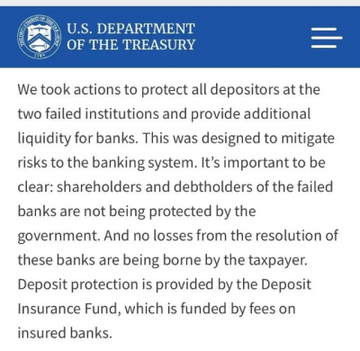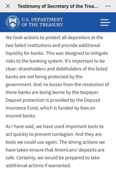 本周三,在國會講話上,耶倫再度改口,聲稱美國監管機構並不打算提供“一攬子”存款保險來穩定美國銀行體系。