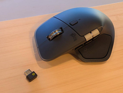 Logitech MX Master 4支援使用藍牙進行連線,或者可以搭配羅技獨家的Logi Bolt連接器,獲得更低更穩定的連線能力,完整充電可使用 70 天。(圖/記者黃肇祥攝)
