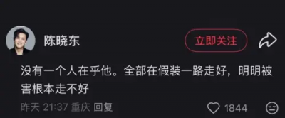 對於陳曉東此番直言不諱的舉動,微博粉絲給予高度支持,「這件事情的確像陳曉東會做出來的,不計較任何利益得失,敢於說出實話,他果然還是以前那個年輕人,絲毫沒有一點點改變,儘管已經活過半輩子,依舊保持最初的心意,始終正直、充滿良善與勇氣。」也有粉絲擔心陳曉東的安危,希望身為台灣女婿的他,能回到台灣比較安全。
