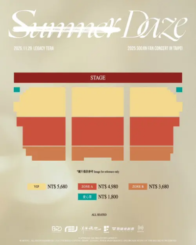 活動票價:VIP 5680元、A區4980元、B區3680、愛心票1800元