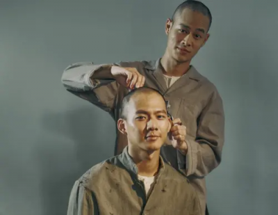 ▲吳念軒(前)為新戲《星空下的黑潮島嶼》剃成光頭。(圖/客台提供)
