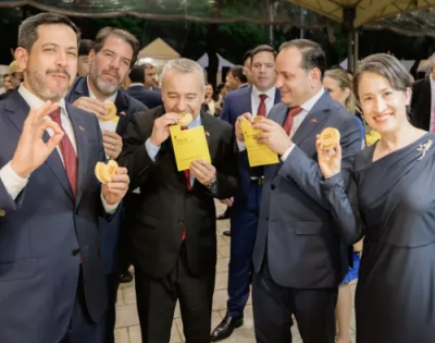 外交部長林佳龍與妻子廖婉如甜蜜蜜,狂曬恩愛眼神藏不住情意,閃瞎眾人。副總統蕭美琴則是化身美食家,一一介紹巴拉圭共和國眾議院議長拉多雷品嘗各攤位美食。