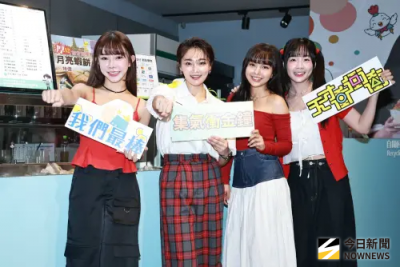 ▲巫苡萱(左起)、張文綺、凱希、籃籃為《天才衝衝衝》奪金集氣。(圖/記者吳翊緁 攝影)