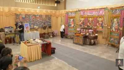 於朦朧9月11日墜樓身亡,外界認為死因不單純,陰謀論在網路上瘋傳,為了讓於朦朧亡魂安息,孫德榮今日在台灣替他舉行招魂法會。法會今日中午12點開始,孫德榮身穿一身黑衣入場,由子弟兵在一旁攙扶,落坐在最前排的位置。