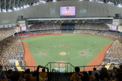 大巨蛋場地座位分布圖雖未明確標示出各區域位置,但根據官網顯示,內野總數約2萬7000席、加上4、5樓開放的6000席,等同於左、右外野環繞區域,約有7000人,再扣除掉右外野也是黃衫軍球迷聚集地,等於左外野樂天桃猿球迷所在的客隊區域,僅約3500人至4000人間。