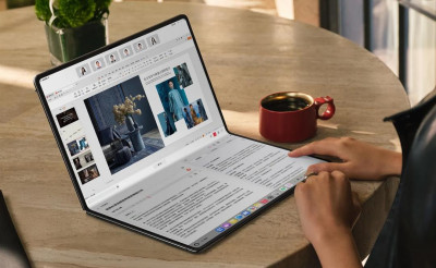外觀方面,展開的外型類似一台MacBook,採用鋁製機身和OLED螢幕,不具備外螢幕。整體看來有點相似華為在中國上市的MateBook Fold。