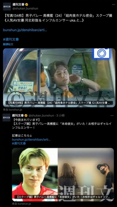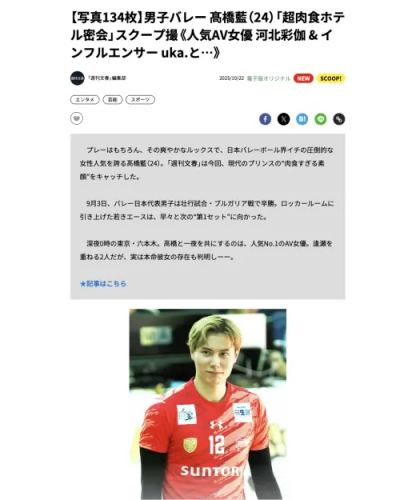 標題:日本排球王子高橋藍劈腿河北彩伽!一堆女優恐受害 肉食行徑曝光