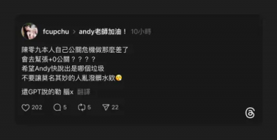 標題:陳零九捲入Andy糾紛!謝和弦怒嗆低級 緋聞女友啾啾:不要潑髒水