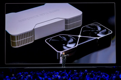 NVIDIA最新的RTX 50系列顯示卡,特別強調AI渲染速度比先前快八倍,無論遊戲還是創作都能有更好的體驗。(法新社)
