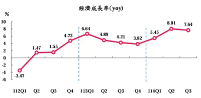標題:表現優於預期!主計總處:第三季經濟成長率7.64%