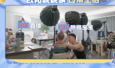 歐陽龍和傅娟的大女兒歐陽妮妮去年和男星張書豪結婚,今年1月生下兒子「睦睦」,4月時一家三口搬到中國杭州生活,近來他們登上綜藝節目《亂室英雄》,首度公開杭州豪宅內部,客廳大到能放下6張沙發,歐陽妮妮也說自己想生3胎,但張書豪馬上拒絕,因為小孩都是他在照顧,如果要再生,妮妮勢必得一起分攤,怕到時她對育兒的快樂度就會減少。