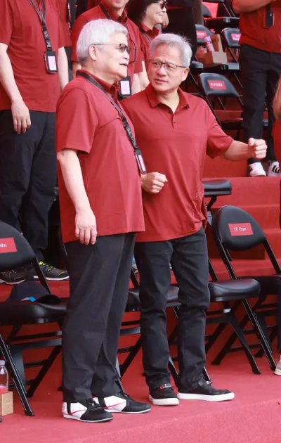 我是廣告 請繼續往下閱讀 今日魏哲家與輝達執行長同框現身運動會,而黃仁勳也一同穿上了台積電的運動會專屬制服,衣服背面領口上左下角有小小tsmc字樣,仔細近看,更是發現衣服單側邊有深色、黃色的線條,像極了電路板,盡顯巧思,有民眾說,衣服有種「老錢風」的感覺。
