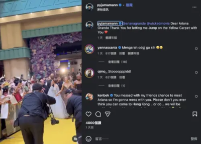 標題:亞莉安娜紅毯被網紅撲抱!新加坡政府震怒抓人 最高恐關3個月