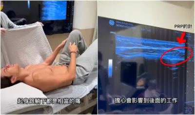 劉書宏隨後拍攝治療影片,表示受傷後他無論躺下還是起身都相當痛苦,需要旁人攙扶,因此最終他決定選擇聽從醫師建議,注射PRP(Platelet-rich plasma,高濃度血小板血漿)治療,幫助傷口更快癒合,減輕痛苦。