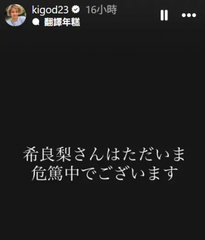 我是廣告 請繼續往下閱讀 希良梨從17日開始,先發出一則由經紀人代發的貼文,寫下:「希良梨依然在抵抗癌症,還沒有痊癒」,接著於昨日發出在醫院的照片,然後突然又用黑底白字寫下:「希良梨目前在病危狀態中」,同時PO出與兒子在便利商店喫冰淇淋的照片,火速引來大批粉絲的關心。