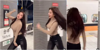 我是廣告 請繼續往下閱讀 李多慧肉色緊身裝熱舞!高鐵月台忘情搖擺