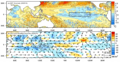 氣象專家林得恩表示,美國國家氣象局氣象預報中心今年11月最新研究指出,根據目前最新氣候預報模式模擬結果,自9月開始,發生反聖嬰的訊號續有增強的趨勢。尤其,在今年10月至12月,反聖嬰發生的可能性已經衝破80%以上,且可持續到2026年2月(發生機率都在50%以上),隨後再逐步下降,最後恢復中性正常特徵。