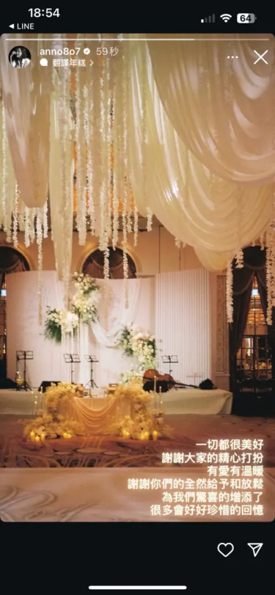 在貼文中,許瑋甯簡潔卻真摯地寫下「一切都很美好」,彷彿將整場婚禮的浪漫與感動濃縮成一句話,她提到當天所有人的用心打扮、滿懷誠意的參與,都讓婚宴增添溫度;她特別強調「有愛、有溫暖」,語氣中充滿感激,不僅是對出席者的回應,更像是她沉澱後的整體感受,由於婚禮籌備期漫長繁瑣,真正結束後的新娘通常最能感受細節背後的心意,而她選擇用最柔軟的方式分享這份餘韻。