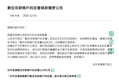 標題:境外IP不能申請!合庫銀行數位帳戶打詐新措施 明年2/2上路