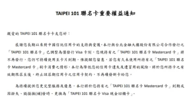 標題:掰了萬事達卡!中信銀台北101聯名卡公告了 全數換發Visa卡別
