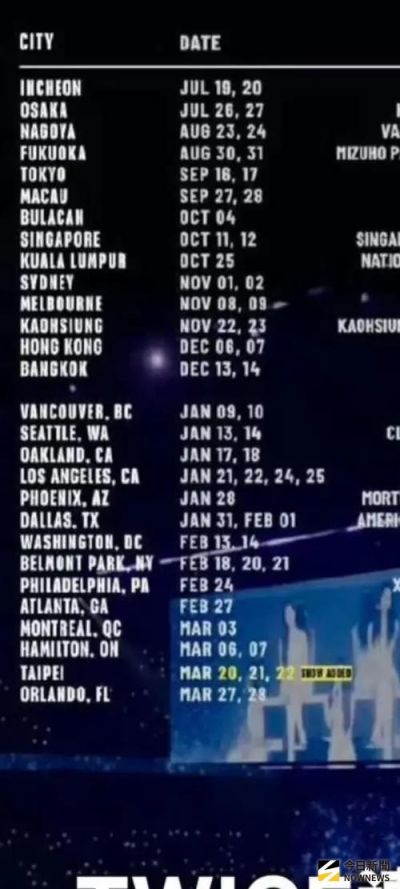 事實上,《NOWNEWS今日新聞》記者早在高雄巨蛋場前就掌握加開第3場資訊,因為臺北大巨蛋的租賃、裝台、拆台時間加起來,連辦3天是最理想且最符合經濟效益的做法。然而,由於此次TWICE演出採環形舞台,體力消耗之大跟一般舞台不能相比,因此在臺北大巨蛋連唱3場將會是TWICE此次巡演第一次。
