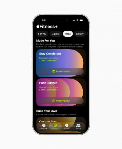 此外,搭配Apple Watch能進一步強化訓練體驗,或使用AirPods Pro 3並直接在螢幕上查看個人測量指標,例如心率、消耗的卡路裏、「活動記錄」圓圈的進度,還有「燃脂進度列」,讓使用者能將自己的訓練強度與完成同一訓練的他人比較。透過「自訂計畫」,Apple Fitness+會依據使用者的體能訓練與冥想偏好,包括最常進行的活動、訓練時長、教練、音樂等,自動建立個人化排程。