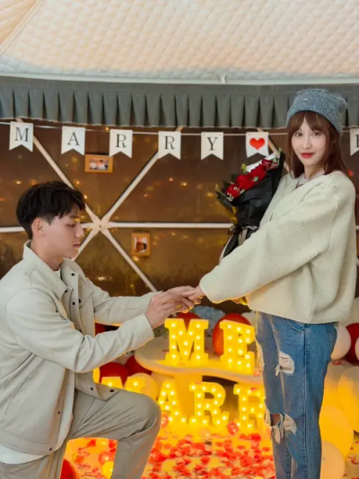 今日陳晨威的求婚花絮被多名好友釋出,只見現場佈置溫馨,他身穿西裝、緊張又堅定地單膝跪下,說出深藏心底已久的告白話語,而啾啾則感動得頻頻拭淚,最終伸手讓他替自己戴上求婚戒指。