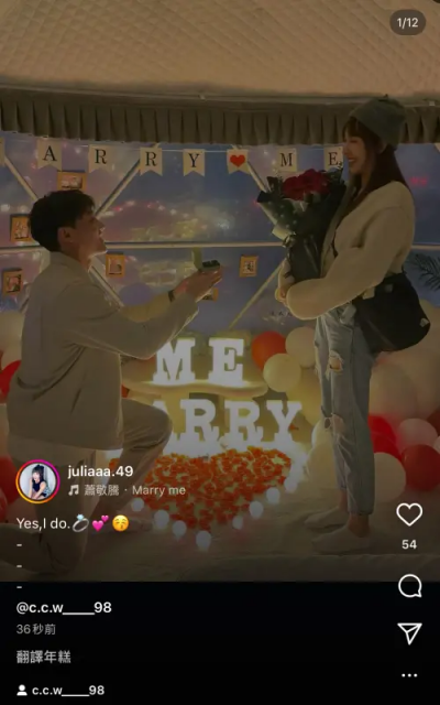 親友們在旁激動鼓掌,粉絲們看完更是留言:「終於等到這天」、「啾威 CP正式官宣」、「比 MVP 更讓人感動的時刻」,而陳晨威好友們也紛紛獻上祝福,表示兩人一路走來不容易:「看到這天真的很替他們開心。」