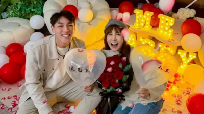 而今日有不少圈內好友在社群平台分享陳晨威求婚花絮,只見他穿著西裝單膝下跪,替啾啾戴上戒指,啾啾也感動落淚點頭嫁,讓許多粉絲直呼恭喜,「選戒指比選球還厲害」、「恭喜神威啾啾」、「要一直幸福啊」。