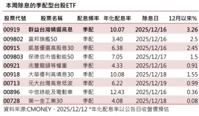 標題:210萬股民注意!9檔季配台股ETF近日將除息 這檔息利雙收最可期