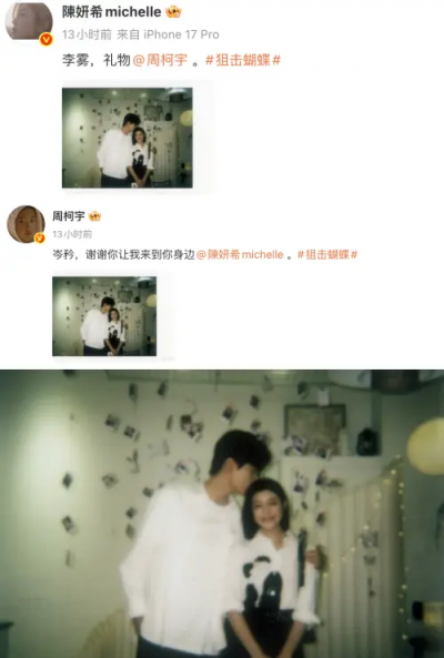 標題:《狙擊蝴蝶》陳妍希、周柯宇官宣?告白私照流出 粉絲嗨:太刺激