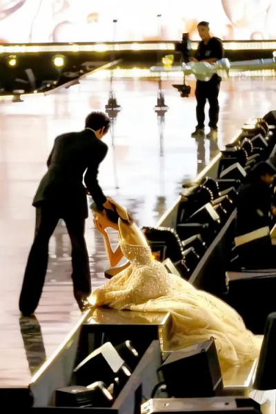 令人意外的是,孟子義摔倒的瞬間並未顯得狼狽,反而被現場攝影師捕捉到角度極佳的畫面,照片中她半跪在台階上,裙襬自然鋪展、表情帶著驚訝與微笑,構圖宛如時尚大片,被網友封為「摔倒界神圖天花板」、「連意外都像精心設計過」,相關照片與影片在微博、社群平台瘋傳,不少人直言:「這畫面比正常走紅毯還美。」