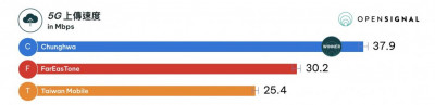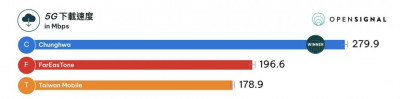 遠傳電信的5G下載速度196.6Mbps、上傳30.2Mbps。至於台灣大哥大,5G下載速度178.9Mbps、上傳則為25.4Mbps。