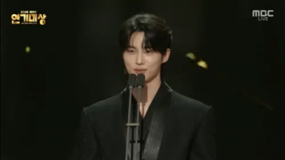 今年《2025 MBC演技大賞》由金成柱、李先彬主持,一同揭曉今年MBC戲劇類各大獎項得主,IU與邊佑錫一起頒發「年度最佳戲劇獎」殊榮,邊佑錫坦言:「站在這裡真的好緊張。」最終「年度最佳戲劇大賞」由徐康俊主演的《臥底高中》拿下。