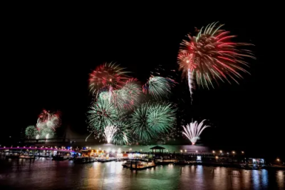 獨家亮點:全台最早20點26分施放「閃耀新北1314跨河煙火」,以三幕篇章呈現多層次煙火視覺饗宴。煙火總長13分14秒,共35,520發創歷年最多,也意涵著「想我,我愛你。一生一世」。